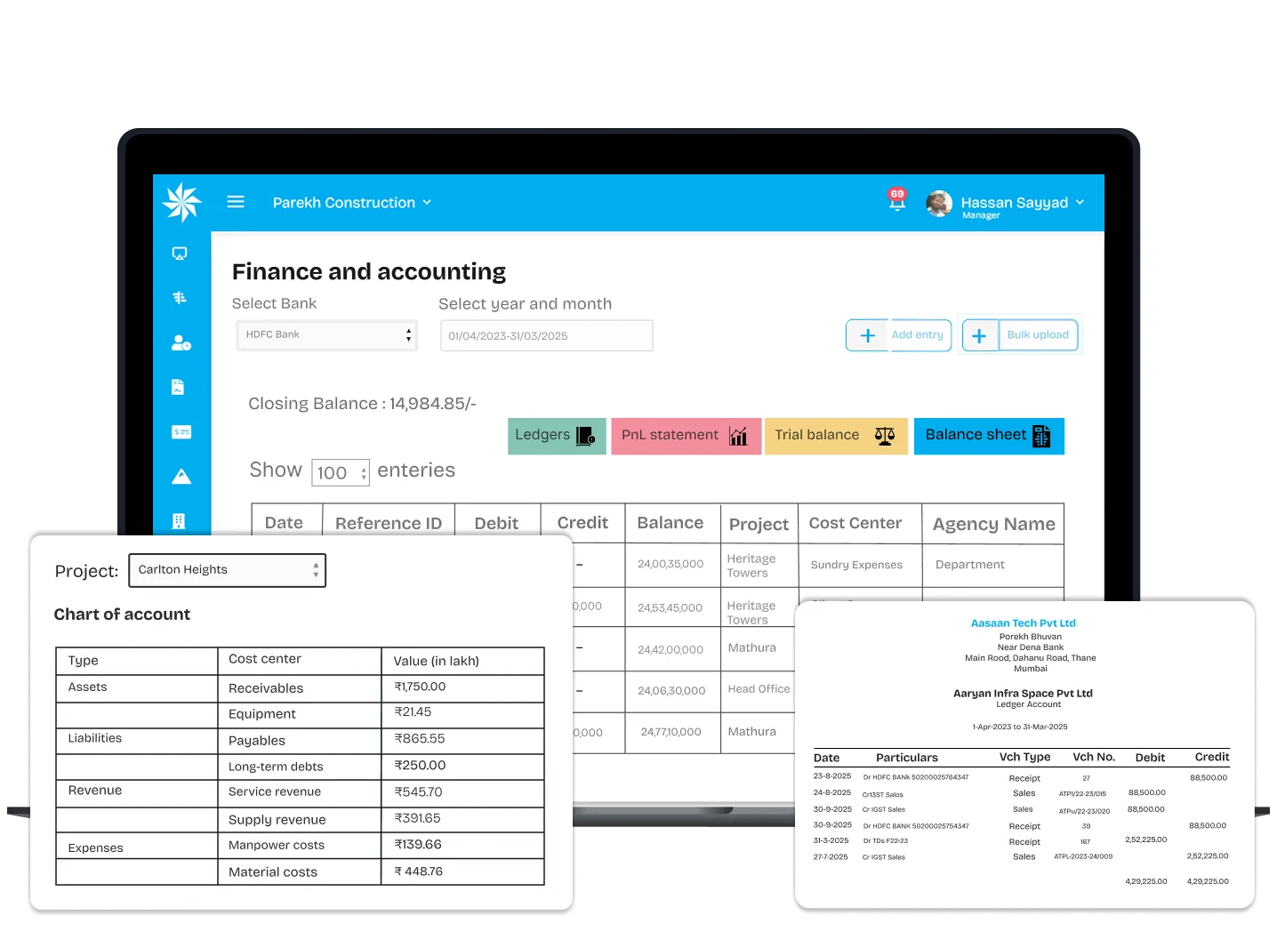 The Aasaan platform provides real-time, bi-directional integration with Tally, ensuring your project procurement and site expenses flow directly to your accounts. This eliminates manual data entry, prevents reconciliation errors, and guarantees that your Tally ledgers are always accurate and audit-ready for financial reporting.