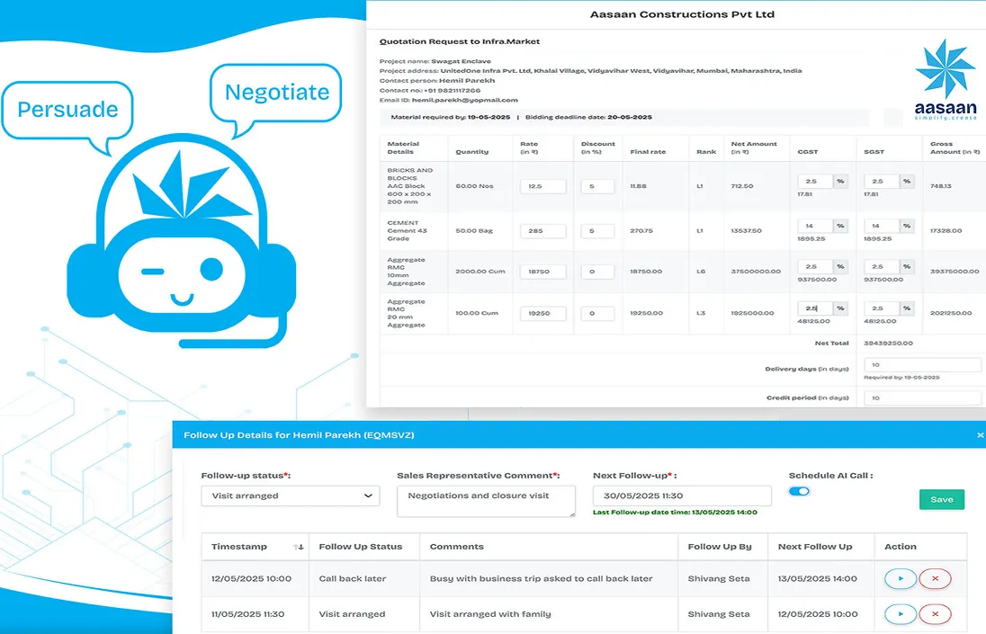 Join the leading construction businesses across PAN India and the Middle East who rely on Aasaan to build better, faster, and smarter.