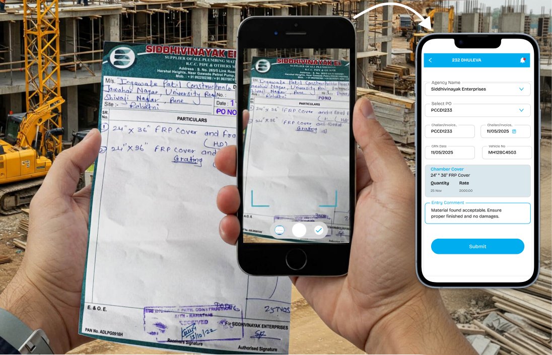 Raaya Scanner AI is trained to read the documents you use every day with unparalleled accuracy. It handles invoices, material receipts, and contracts, ensuring seamless data capture from every type of construction record.